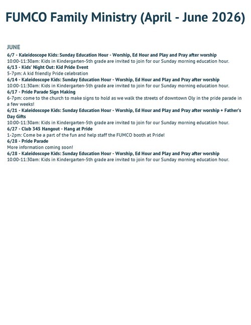 In 2023 Kaleidoscope Children’s Ministry was created to nurture the spiritual lives of children in Olympia and surrounding areas.